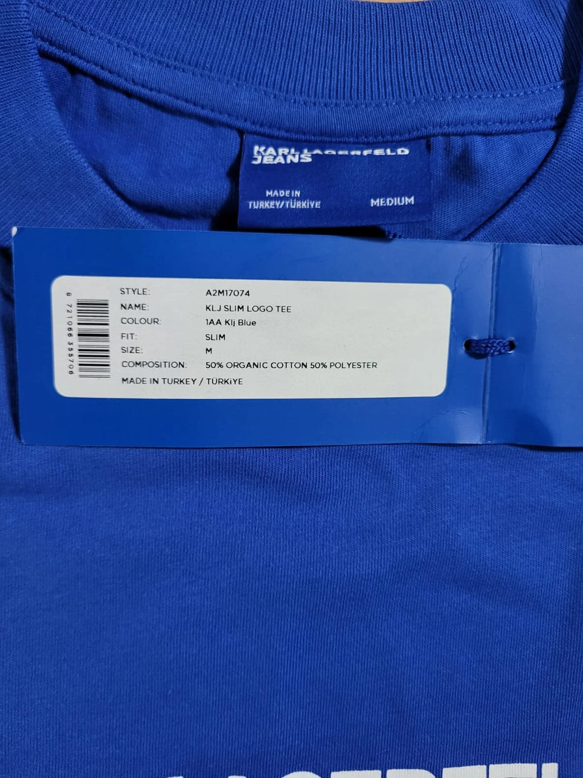 Klasyczny T-shirt Karl Lagerfeld Jeans w intensywnym niebieskim kolorze, zaprojektowany w dopasowanym kroju slim fit, który podkreśla sylwetkę.